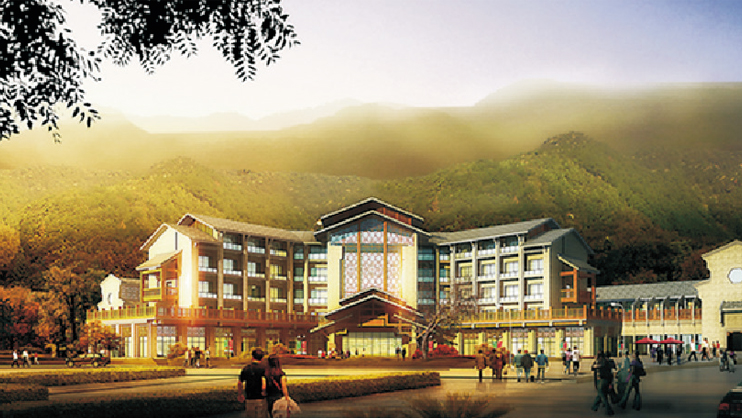 用地规划布局充分考虑规自然环境特色,以生态保护、合理利用和节约投资的规划原则,以景区入口大门为中轴,将风情度假酒店、会所与特色商业步行街、美食街有机分割,区别两种不同形态人流。形成以景区入口广场为中心的围绕结构。每一个区都有独特的主题,各区之间以步行线路、人工水系连接,形成一个完整的景区前沿体。