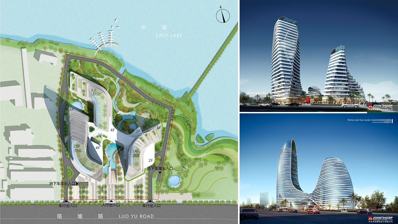 项目位于武汉国家级风景名胜区——东湖边,毗邻光谷广场(城市副中心),随着光谷的不断发展,这片区域将成为重要的商贸、文化、旅游、休闲的汇聚点。设计以龙·水·太极为理念,勾勒出灵动曲致的水岸建筑主体,并与城市景观和谐共生。