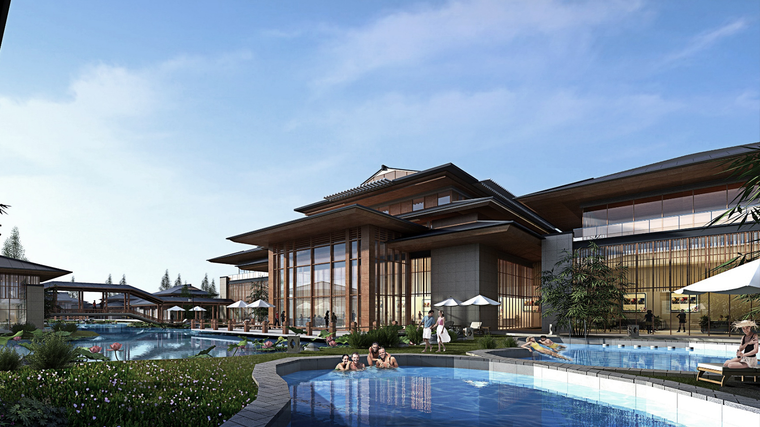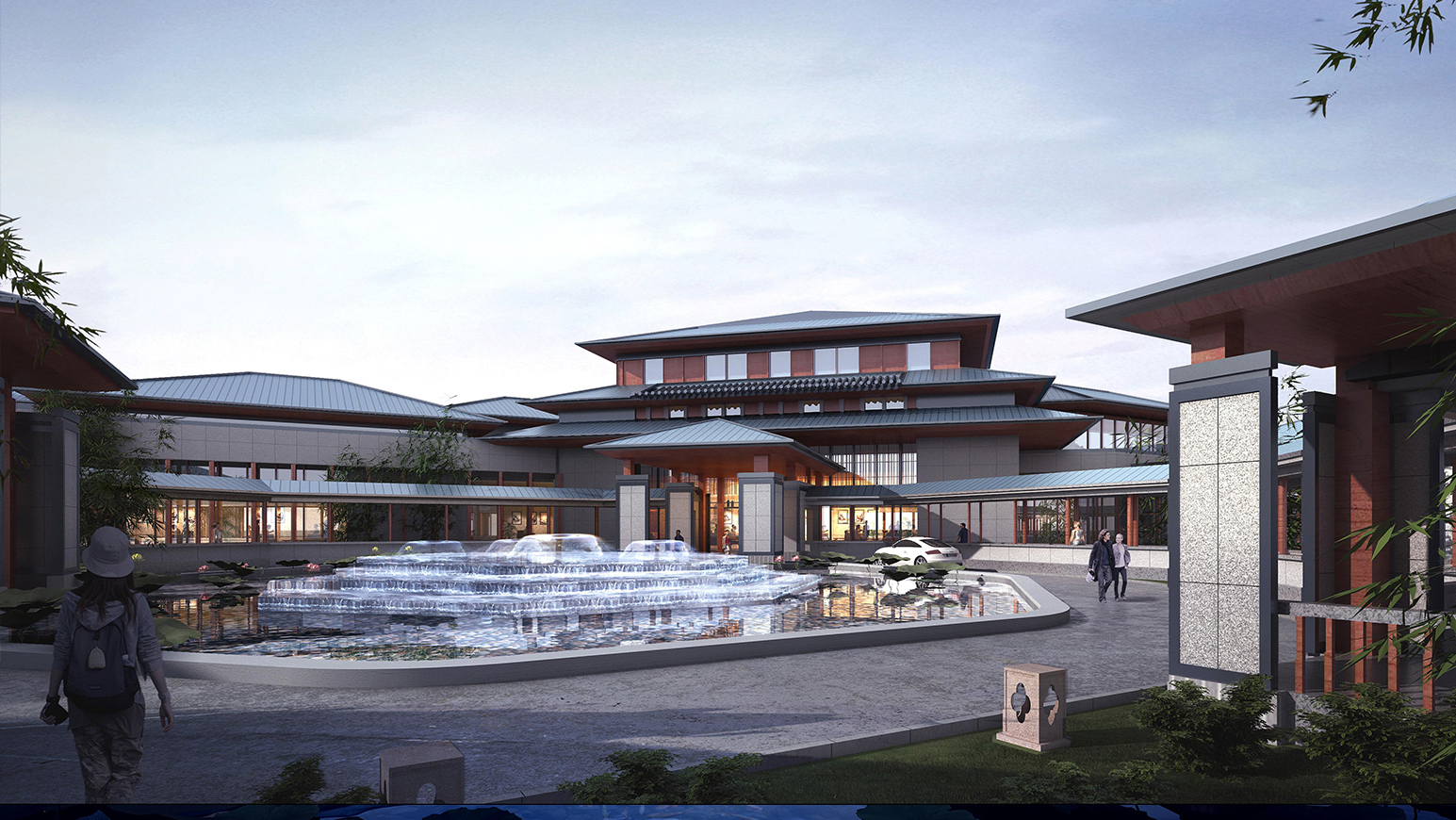 江南水乡以水为媒,带动村落的活力,杨柳湖的水将会所与周边环境融为一体。本案以综合商务区为中心,其他服务单元环绕的形式来设计,引进的景观河道丰富基地内部景观氛围,与杨柳湖风景线达到有机结合,和谐统一。局部用连廊、木亭连接,丰富空间界面,空间关系得以渗透融合,整体性加强。
