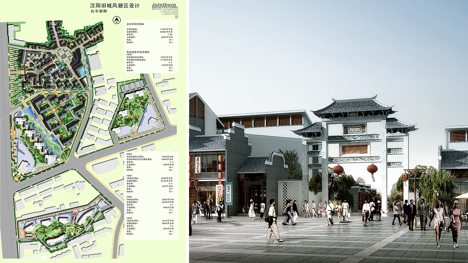 在设计中,延续湖北武汉多居民聚居以及多文化交融的特质,复原再现移植具有强烈特色的居民建筑形式,延续悠久的耐人寻味的历史文脉。重现千年古镇的历史风貌,复兴城市文化,恢复汉阳千百年来传承的悠久传统,使其焕发新时期的青春与活力成为指导设计的重要理念。