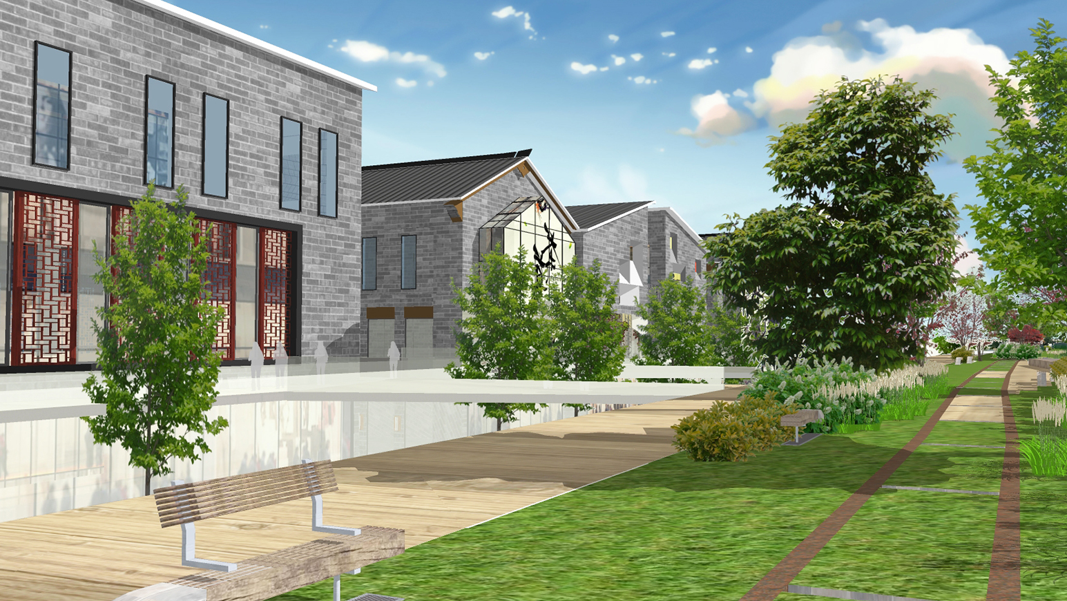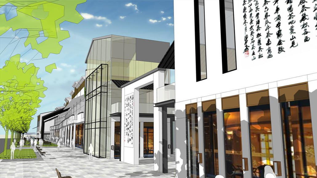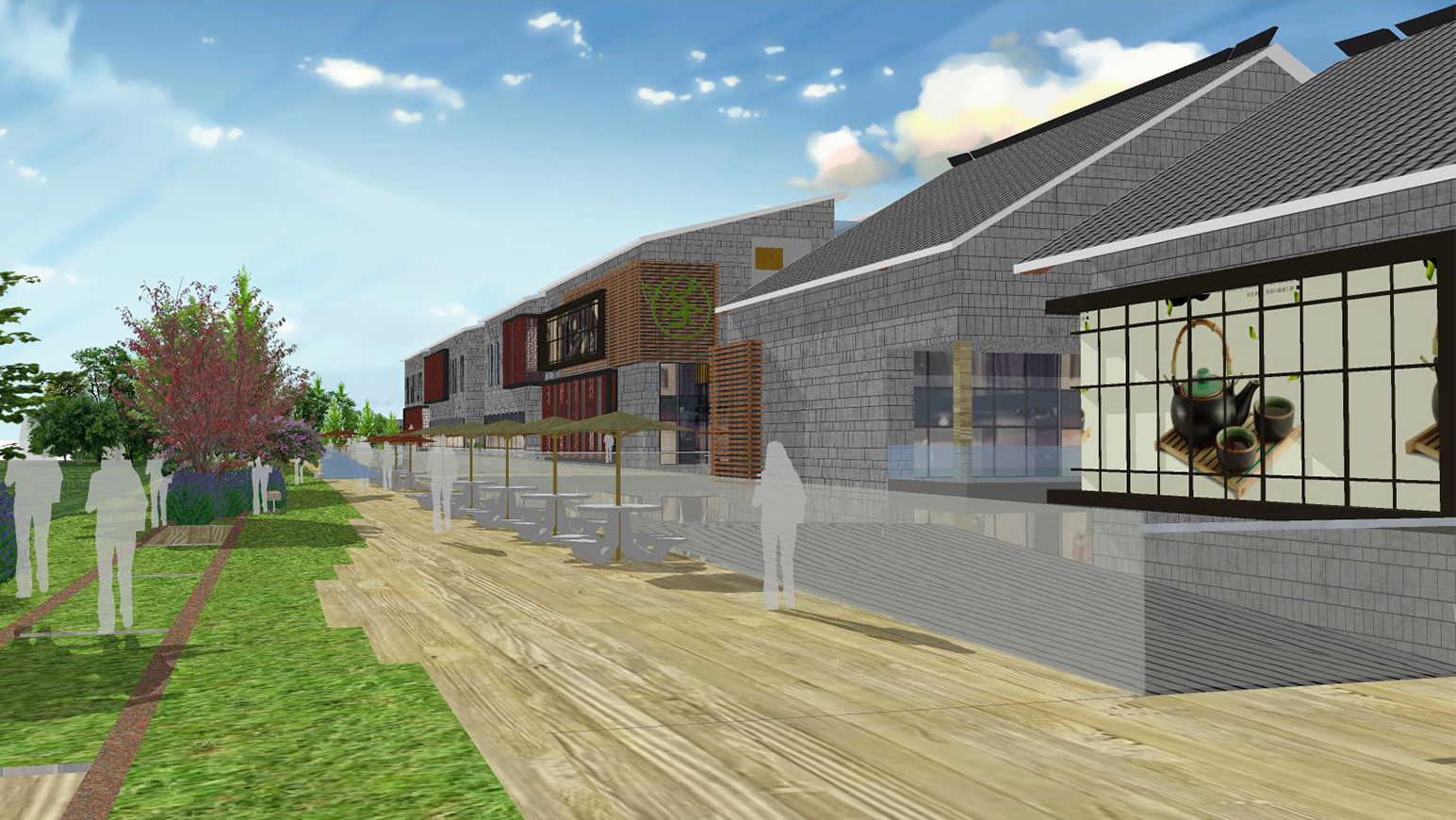 采取村级工业园的微改造更新方式,通过在原有茶叶市场基础上,以茶文化为主题,建成“以茶业电子商务、创意空间、生态金融、跨境贸易为核心,以茶文化创意动力”的茶业商务生态产业园。通过对破旧厂房进行维护修缮,利用创意元素对外立面装饰,打造八个市民绿化休闲广场、铁路文化公园景观带、慢行茶道景观带。