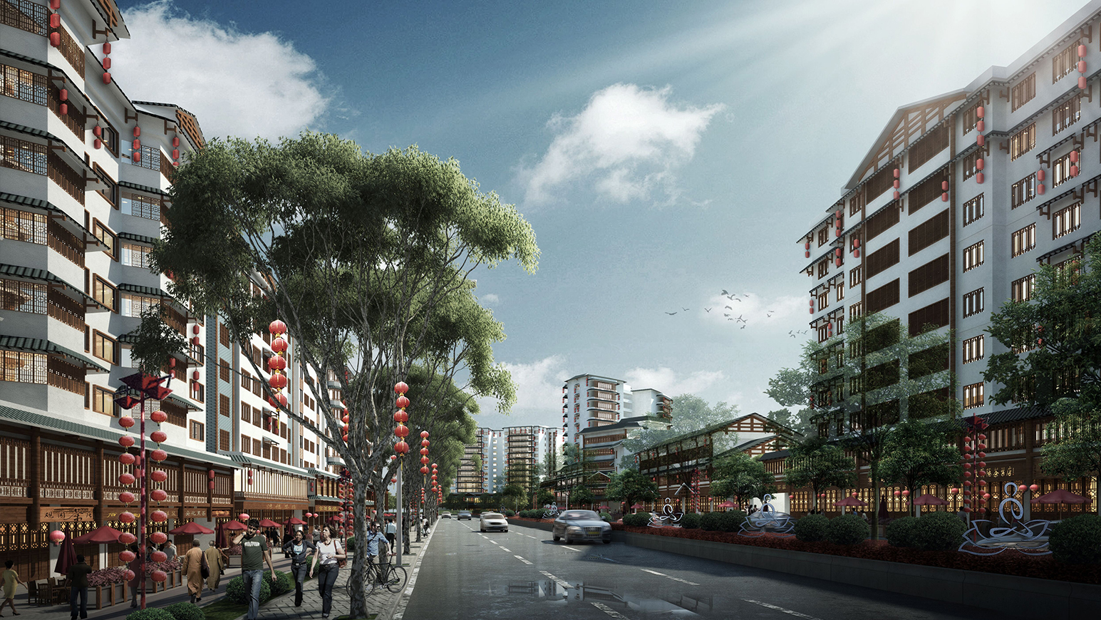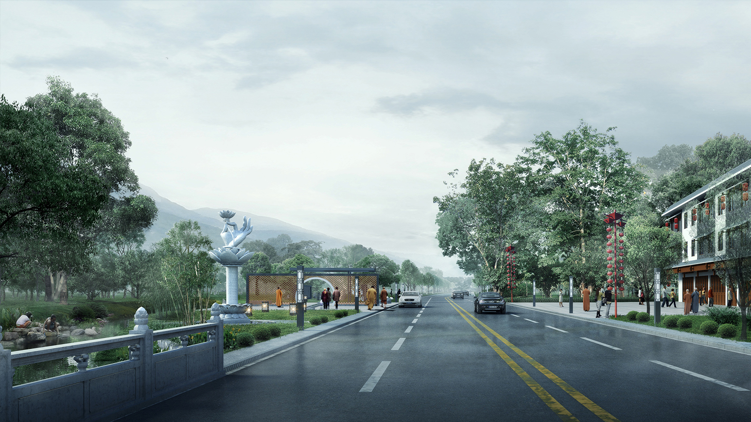 南禅大道沿线建筑立面改造取“形”于粤北,取“意”于南禅。整合岭南建筑风格和韶关地域建筑特色,主要以中式风格为基调,从南华寺的建筑风格、岭南客家第一围的满堂大围、珠玑巷民居、乳源必背瑶寨等传统建筑中吸取建筑构造形式;骑楼式住宅和檐街屋的木构件搭建,木棕色和白色为整体的基调,配上青砖、灰瓦斜飘沿为特色,并注重建筑的时代性,结合休闲娱乐、餐饮等商业功能为街道增添时尚感与多样性。