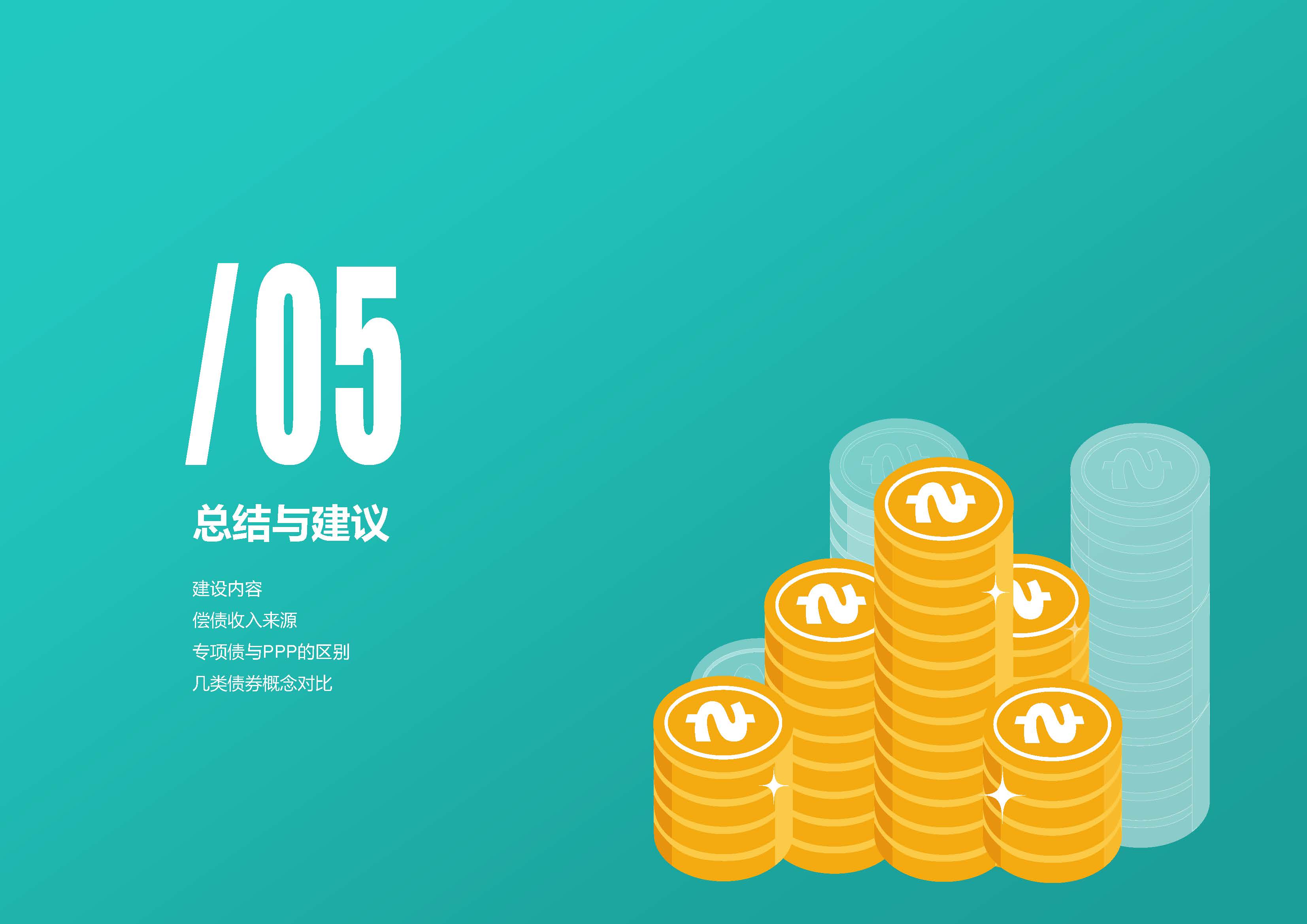 本部分对专项债券重点支持的九大领域的项目建设内容、偿债收入来源进行剖析,并将专项债与PPP项目、一般债、城投债、企业专项债进行横向对比。